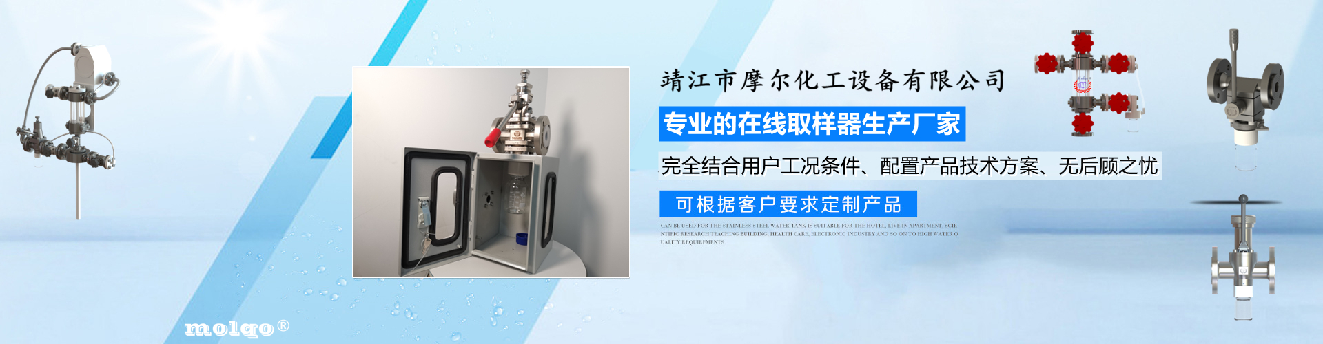 靖江市摩尔化工设备有限公司位于苏中明珠——江苏省靖江市城南工业园区东进路北侧天元艾尔瑞内,另有生产基地位于靖江市经济技术开发区新号路1号鼎电科技园内。我公司由数名长期从事化工生产、氟塑衬里模具开发以及机械自控设备的专业人员共同合作成立,致力于提供客户最优的高效在线取样、反应及精馏分离设备,为客户提供合理的设备选型方案,以帮助客户提高综合生产效率以及改善生产现场环境为目标。 本公司主要制造及销售的产品有:釜用在线取样装置,管道取样阀,釜用清洗喷淋装置、搪玻璃设备、GMP专用搪玻璃设备、氟塑衬里设备、搅拌器、釜用机械密封、气动阀门及搪玻璃管道、衬氟阀门管道、非标不锈钢容器,精馏塔塔器、片式冷凝器及PTFE密封件、锆、钛、钽、镍等加工件制品。我司是一家集研发销售、设计咨询服务于一体的专业···| 五指山汉率健身俱乐部 | 长沙品茶场子 | 南宁0771sn论坛官网入口 | 上海各区品茶喝茶 | 风楼阁论坛信息 | 盐城途驼商贸有限公司 |